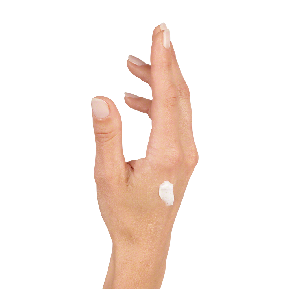 Mornings after a serum, scoop up the foam that has formed on the surface of the cream with the mini applicator brush. Apply 4 dots of the foam to your face and spread with light brushstrokes rather than massaging in with the hands. This application method keeps the cream from overheating in the hands and helps oxygen reach the skin cells.